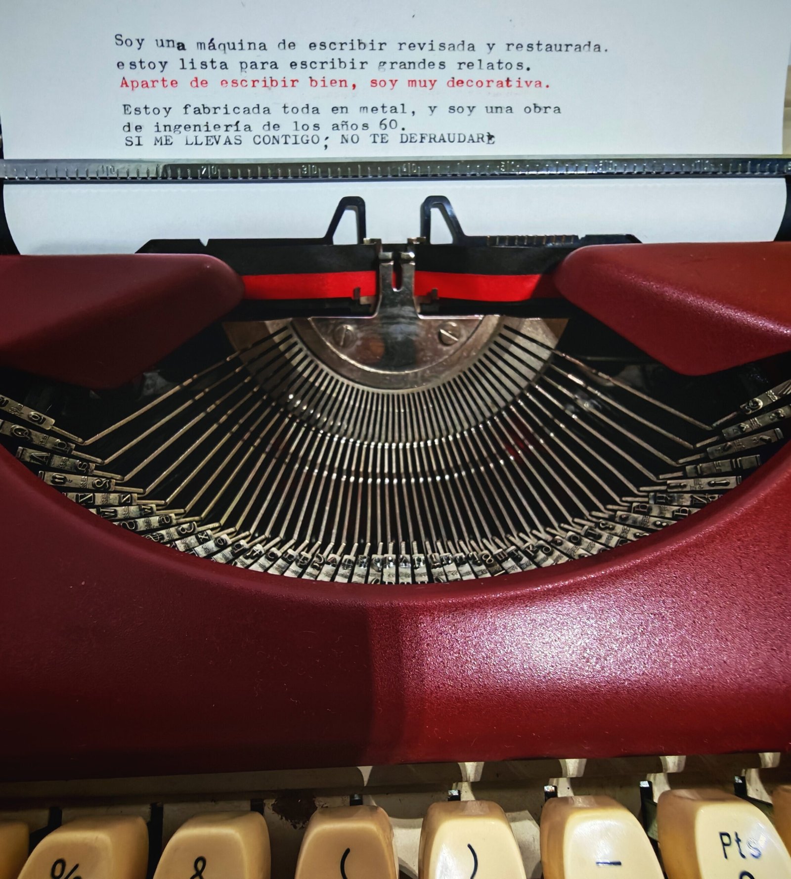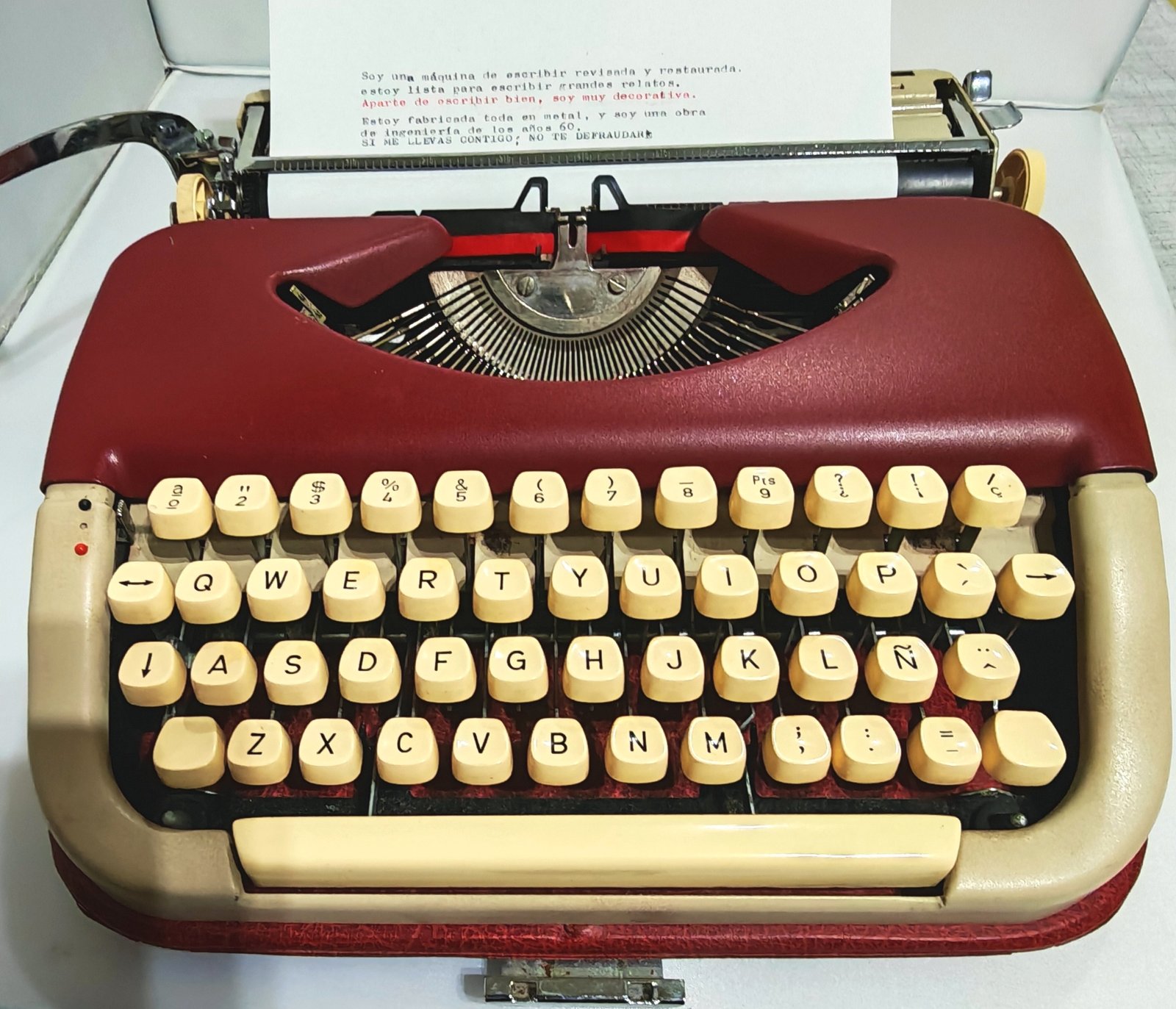 It has been professionally cleaned, serviced, and restored, with a new ink ribbon installed and all keys working perfectly. Its Spanish QWERTY keyboard with Ñ offers a smooth, comfortable typing experience, along with that characteristic vintage sound only classic typewriters can deliver.