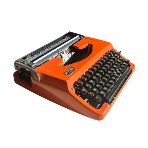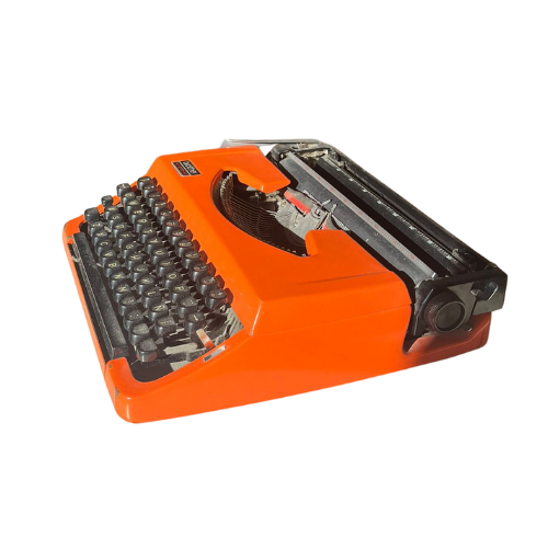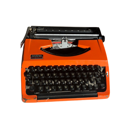 La Brother 210 es una máquina de escribir portátil fabricada por Brother (Japón) y muy popular durante la década de 1970, especialmente en su versión de colores vivos como este llamativo naranja. Pensada para uso doméstico, estudiantes y escritura ligera, se hizo conocida por su tamaño compacto, su fiabilidad mecánica y un diseño muy reconocible de estética retro.