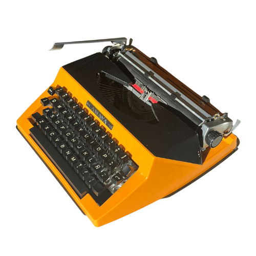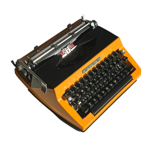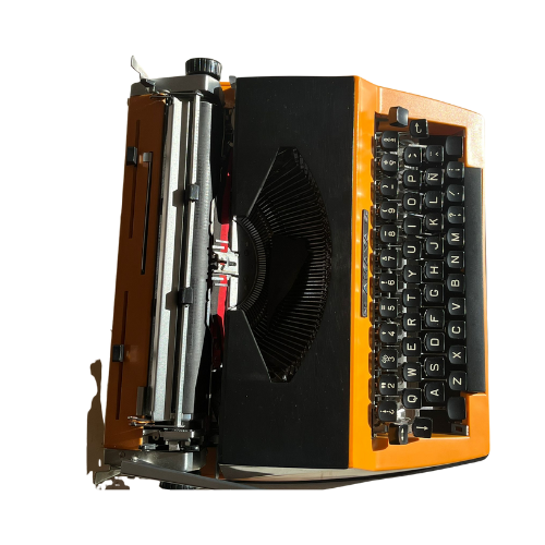 La Amaya 93 es una máquina de escribir portátil fabricada en España entre finales de los años 70 y principios de los 80. Famosa por sus colores llamativos —como este vibrante tono naranja— y su diseño compacto, este modelo se convirtió en una de las máquinas personales más utilizadas en hogares, estudios y entornos educativos de la época.